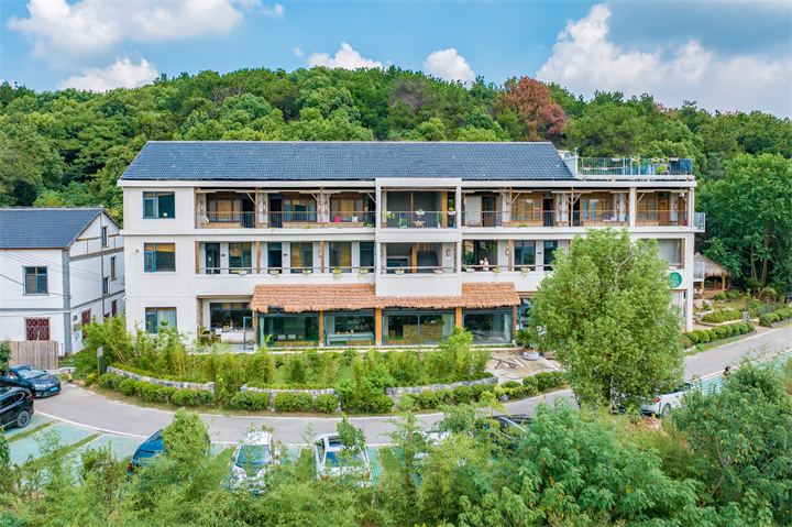 车往村里开,一路平稳、宁静。闲适的村落风景,清脆悠扬的鸟鸣,将城市的烦恼抛在脑后。野浪漫高奢民宿两层白色别墅安静坐落在乡村小道边,门牌上写着“野浪漫”三个大字。青葱花草,简洁白墙,让人忍不住一探究竟。